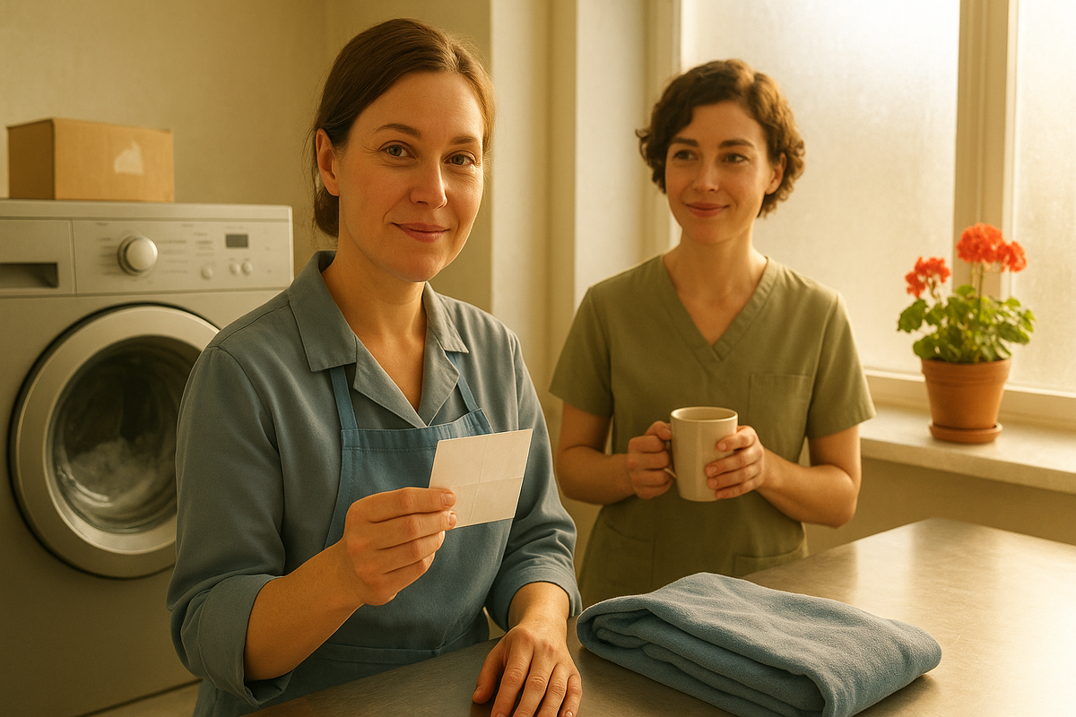 На третий день случается странное. В кармане халата из шестой палаты — фартук, которого не должно быть. Тонкая ткань с синей полосой. В маленьком кармашке — записка: «Не стирай моё молчание, пожалуйста». Екатерина держит её, пока машинка щёлкает дверцей, и вдруг понимает: письма не исчезают. Исчезают оправдания. Чернила смывает не вода, а то, что уже не нужно.
