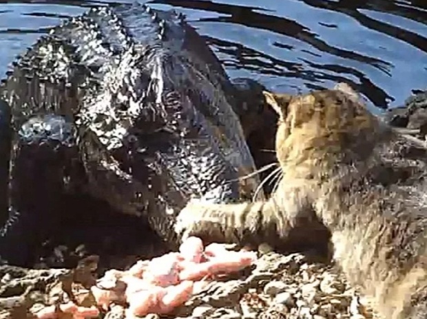 А вот случаи, когда котик, отвоевывая свою еду или территорию бьёт лапой крокодила, действительно кажутся невероятными.