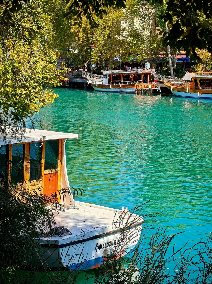 Завораживающая бирюза Турции. Сердце города Манавгат - его река. Здесь лодочки соседствуют с уютными кафе, а природа гармонично вписана в городскую жизнь. Идеальное место для неспешного отдыха и красивых кадров! Турция, провинция Анталья, г. Манавгат, 2025 год. OnePlus 13.