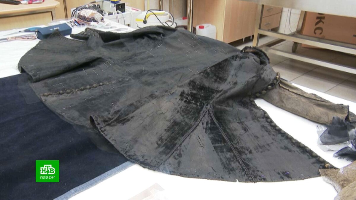 [ Смотреть видео на сайте НТВ ] Хранители эрмитажной коллекции определились с главным претендентом на ближайшую реставрацию. Специалисты взялись за уникальный морской костюм Петра I. Реставраторы Эрмитажа — единственные, кто дотрагивается до шкиперского костюма Петра I без перчаток. Только так можно прочувствовать состояние ткани. От прикосновения, признается Марина Денисова, иногда по спине пробегает холод. Кажется, одно неверное движение, и черный бархат превратится в пыль. Марина Денисова, заведующая лабораторией научной реставрации тканей и водоразмываемой живописи Государственного Эрмитажа: «Очень много ворса вытерто на куртке, местами сохранился этот ворс, и мы, в основном, видим грунт, основу ткани, которая тоже очень сильно повреждена. Она даже немножко изменила цвет. Она уже не черная, а уже где-то серая, где-то коричневая, плюс очень много разрушений, сечений». Приталенная куртка на многочисленных пуговицах или сшита голландскими мастерами на рубеже XVII-XVIII веков. Об этом