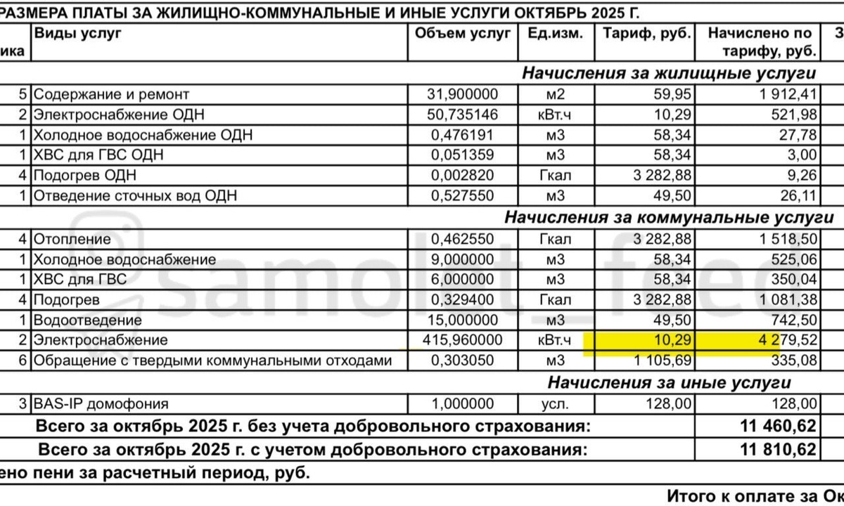 Тем временем цена 1 киловатта электричества в апартаментах нашего ЖК стоит уже 10,29 рубля (один тариф