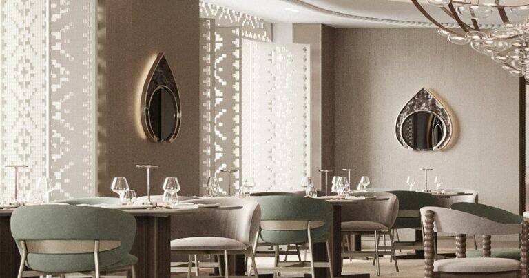 Уникальное место, пропитанное русским кодом! Ресторан «Притча» — проект нашего дизайн-бюро, который откроется в конце ноября. Это заведение с актуальной русской кухней, где современный интерьер гармонично сочетается с панорамными окнами на Садовое кольцо и отсылками к народным мотивам. Внутри вас встретит стойка для хостес, выполненная из макраме (на втором фото),которая сразу задает тон всему пространству. Традиционные русские шкафы‑буфеты выступают ключевым культурным акцентом, а зеркала в виде кокошников (на первом фото) добавляют изящества и узнаваемости русской эстетике. Такой дизайн создает атмосферу, в которой современность переплетается с богатой историей. Хотели бы вы посетить этот ресторан? #проектЕК