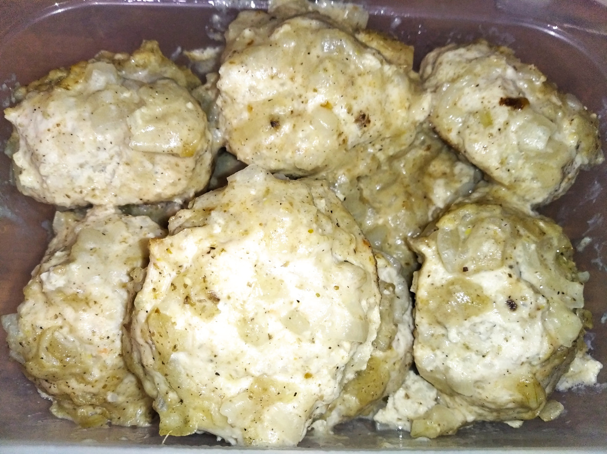 Если у Вас, как и у меня остался грибной плов, а хочется уже чего-то другого, то готовьте вместе со мной. Сегодня у меня в рецепте: - куриная грудка примерно 500 грамм, - грибной плов примерно 300 грамм ( уже готовый), - сметана 15% две столовые ложки, -сметана 15% две столовые ложки, - луковица, одна штука крупная, -соль, - уцхо-сунели, кориандр, масло растительное одна столовая ложка, -яйцо одна штука, -вода примерно 100-150 грамм, -одна столовая ложка муки или картофельного крахмала. Приготовление. В кухонный комбайн с ножом кидаю порезанную на кусочки куриную грудку, половину воды, яйцо, соль и специи по вкусу, довожу до состояния фарша. Далее сюда же кидаю плов, он довольно сухой, и чтобы его вбить в куриную массу нам понадобится вода, через три-четыре минуты масса становится однородная. Для усиления вкуса грибов в блюде, я готовлю грибной соус со сметаной, для этого я нарезаю одну луковицу мелким кубиком, жарю ее на столовой ложке растительного масла, сразу добавляю грибную муку