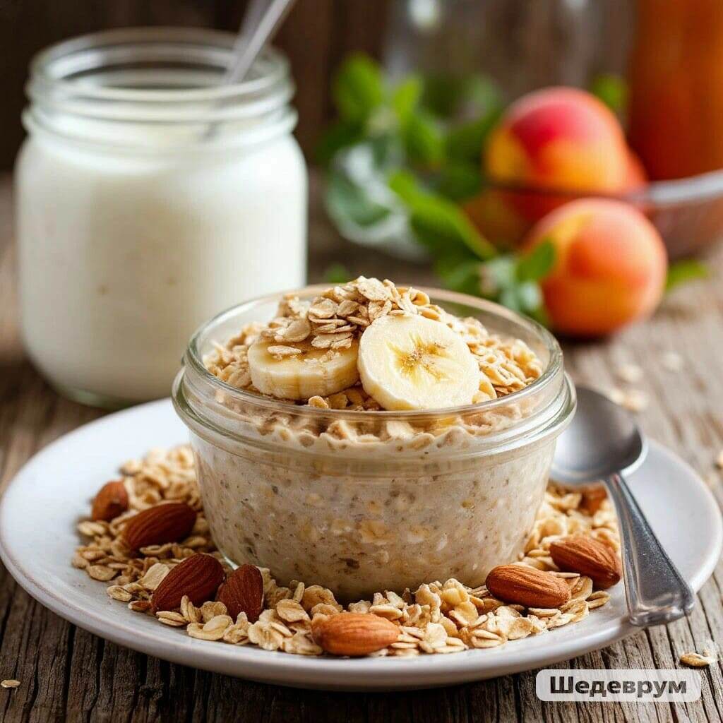 Ленивая овсянка в банке с йогуртом — это идеальный завтрак для тех, кто ценит свое время, но хочет начинать день с полезной и вкусной еды. Она готовится с вечера, а утром вам останется только достать ее из холодильника. Вот подробный гид, как ее приготовить, с классическим рецептом и идеями для вариаций. Основной принцип Вы просто смешиваете в банке овсяные хлопья, жидкость (йогурт, молоко) и добавки, оставляете на ночь в холодильнике, и за это время овсянка впитывает влагу, становится мягкой, нежной и похожей на пудинг. Классический рецепт "База" Идеально для банки объемом 400-500 мл. Ингредиенты: · Овсяные хлопья: ½ стакана (около 50 г). Используйте обычные "Геркулес", не быстрого приготовления. · Йогурт: ½ - ⅔ стакана (около 150 г). Натуральный, греческий (будет гуще и богаче белком) или любой любимый питьевой йогурт. · Жидкость: ¼ - ⅓ стакана (около 60-80 мл). Молоко (коровье, растительное), кефир или сок. · Связующий компонент (по желанию, для кремообразности): 1 ст.л. семян чиа