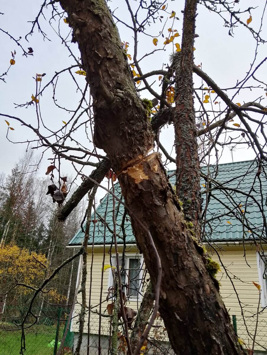 10.11.2025 ЛенОбласть. Всем привет. Наконец я собралась закрыть сезон и отдыхать до зимних праздников. Это были планы!!! Я воодушевленная, перемыла весь дом, отключила и отмыла холодильник с морозилкой. Собрала листья с дорожек. Отпилила ветку у яблони. Пилить не удобно, то с одной стороны подойду, то с другой. Пилила, пилила. Все таки добилась своего))) Допилила. Следующее, надо было с газом разобраться, друг пришел заменил мне газовый шланг. Все проверили, и я попросила друга: я яблони пилю, помоги. Тебе проще и быстрее. В итоге друг мне спилил и на второй яблоне две ветки. За что ему большое спасибо! Мне оставалось только ветки распилить, что-то на дрова пустить, а что-то на розжиг в бочку.
