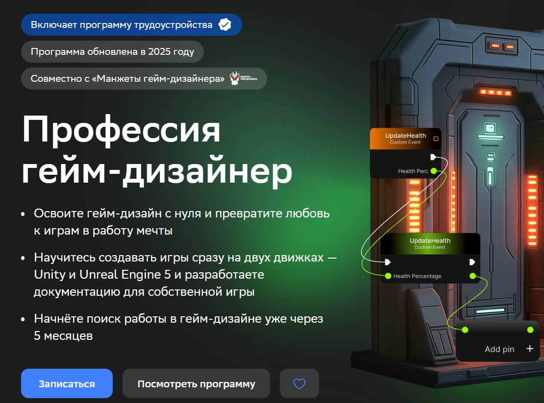 Профессия гейм-дизайнер — геймдизайн с нуля на Unity и Unreal с практической стажировкой