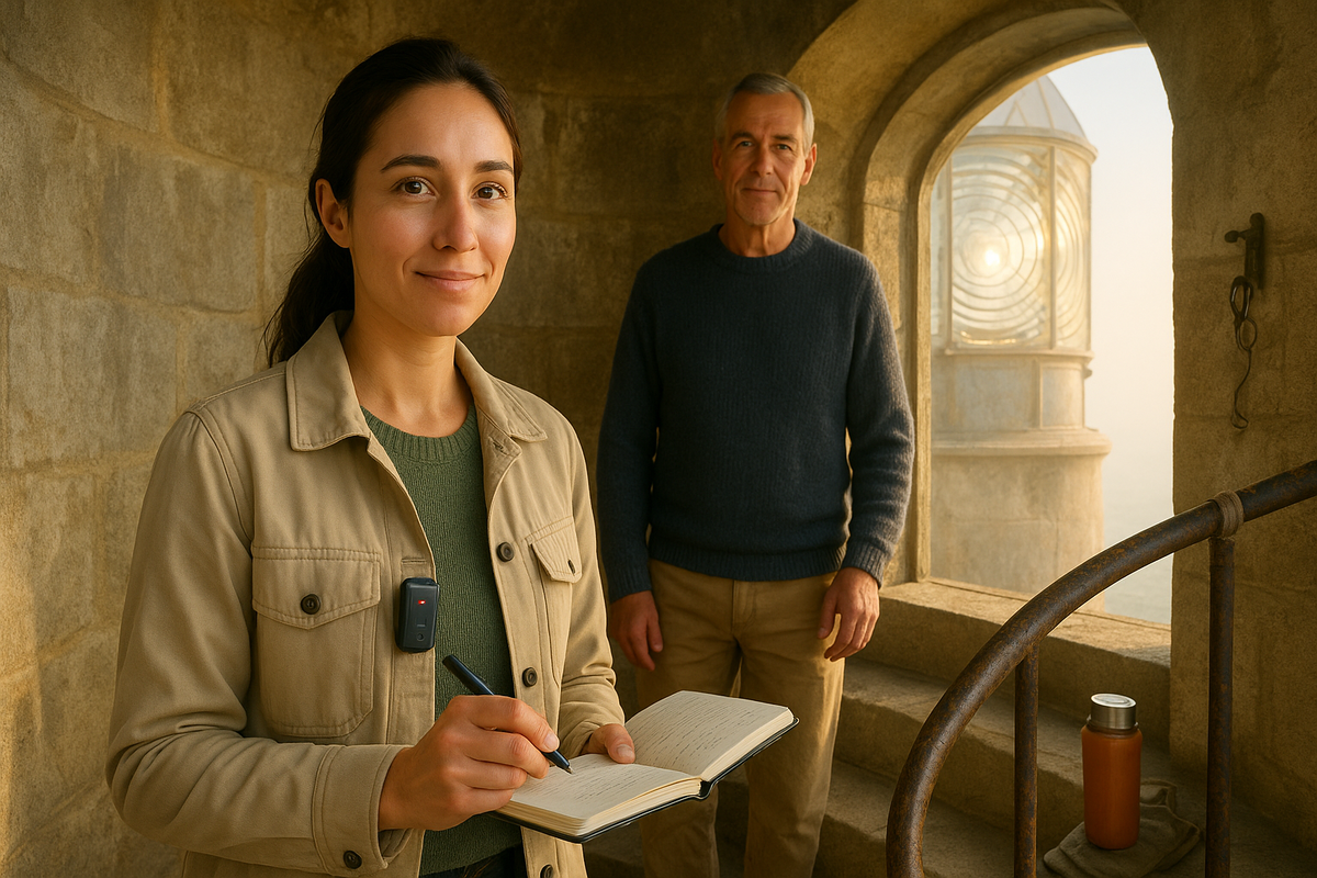 К вечеру текст собирается строгим. Она убирает «восхитительные» слова, оставляет ясные. Пишет: объект списан, питание отключено; ночная фиксация — аудио пяти минут дыхания; визуальная аномалия — краткие отблески без источника; субъективная запись — повелительное предложение, написанное её рукой; ценность — точка ориентации для маломерных судов и элемент культурной памяти; риск сноса — смещение маршрутов в туман. Вставляет две реплики: смотритель «Если у вещи есть дыхание, не душите её железом» и рыбак «Даже тёмный маяк — это точка». В лиде — конкретная ночь, холод, скрежет двери, а затем короткое: «Не объясняю. Принимаю».
