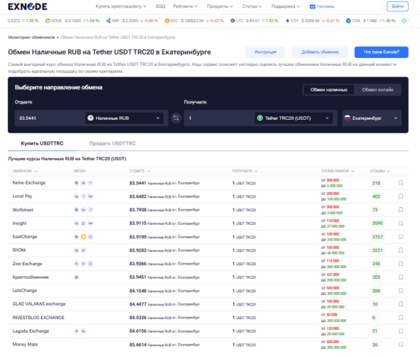 Физические криптообменники Екатеринбурга продолжают оставаться удобным и безопасным способом купить USDT, биткоин и другие криптовалюты. Чтобы быстро ориентироваться в доступных пунктах и оценивать их надежность, удобно пользоваться сервисом мониторинга Exnode, где собрана актуальная информация о работе обменников и популярных валютах.