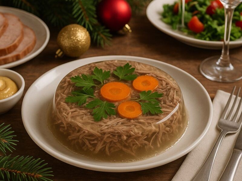 Наше издание продолжает делиться различными рецептами к Новому году. Безусловно, этот праздник невозможно представить без салата «Оливье», мандаринов, шампанского. Однако часто наши соотечественники выбирают и такое блюдо, как холодец. Это – разновидность заливного и студня. Его готовят из говядины, свинины и даже из курицы. В этом материале мы хотели бы рассказать про рецепт этого блюда к Новому году, поскольку сегодня, к слову, отмечается День холодца. Итак, расскажем, как готовится холодец из говяжьего набора. Это – самая популярная разновидность мяса для блюда. Ингредиенты. Говядина на кости (голень, суставы, ребра) – 3,5 кг. Соль – 1 ст. л. с горкой. Репчатый лук – 1-2 шт. Морковь крупная – 1 шт. Чеснок – 1 головка. Гвоздика – 2 шт. Душистый перец – 2 шт. Черный перец горошком – 10 шт. Лавровый лист – 2 шт. Петрушка – 1 пучок. Приготовление. Тщательно промыть говядину на кости и уложить ее плотно в 5-литровую кастрюлю, чтобы не было просветов. Заливаем мясо водой и ставим на макси