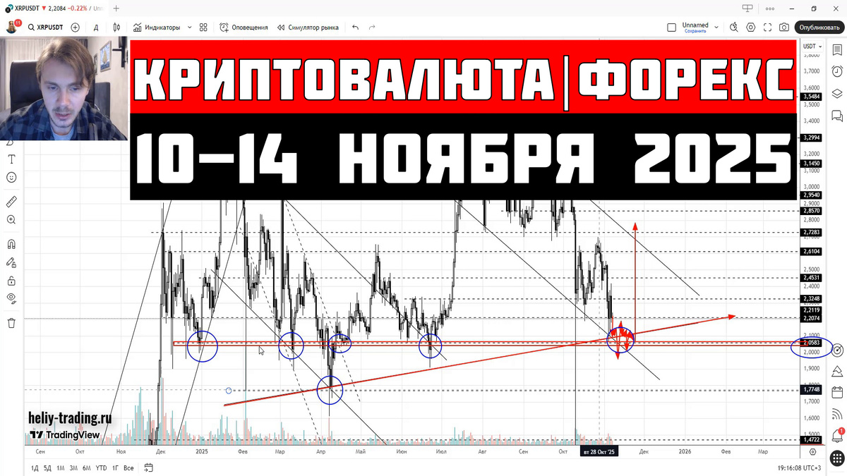 Прогноз Криптовалют и Форекс на 10 - 14 ноября 2025: EURUSD евро/доллар, GBPUSD фунт/доллар, USDCHF доллар/франк, USDJPY доллар/иена, Индекс доллара dxy, USDRUB доллар/рубль, CNYRUB юань, Криптовалюта, Биткоин btc, Эфириум eth, Ripple xrp, Binance coin bnb, Solana sol, Dogecoin doge, Litecoin ltc, Toncoin ton, Pepe, Индекс криптовалют total3, Золото xauusd, Серебро xagusd, Нефть brent, Природный газ, Фондовые индексы, S&P 500, Nasdaq, ММВБ, РТС, Инвестиции, Трейдинг. EUR/USD – снижение евро против доллара остановилось на нижней грани восходящего канала и после ложного пробоя начало разворачиваться вверх.