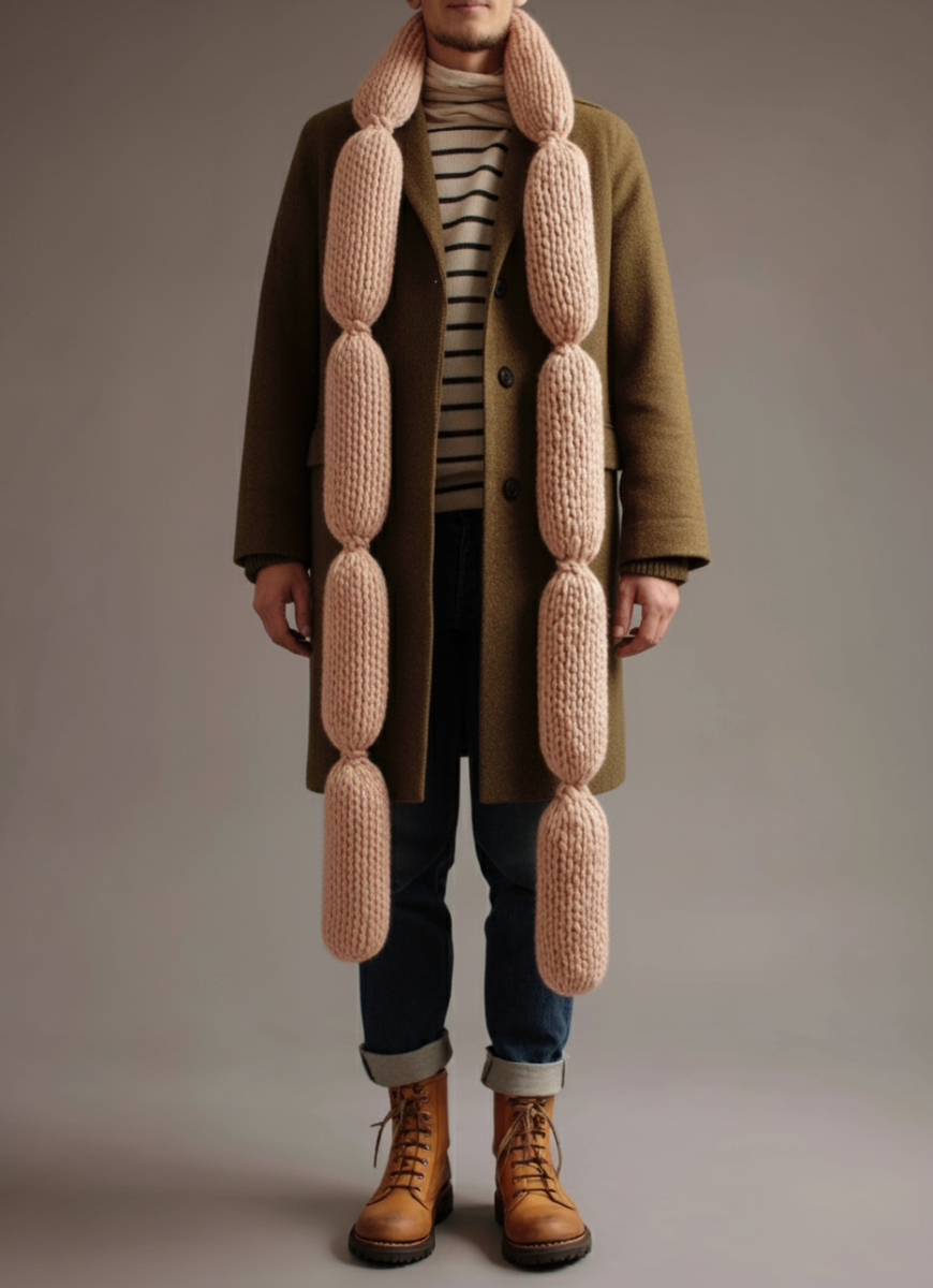 Если ты вдруг проснулся посреди ноября с мыслью "а не намотать ли мне сегодня пару метров тёплой сосиски на шею" — поздравляю, ты выздоровел. Потому что шарф-сосиска — это не просто шарф. Это абсолют. Никаких извращений. Только лицевой гладью. Только по кругу. Потому что, плоские шарфы с изнанкой — это позор и предательство. У настоящего шарфа не должно быть лица и жопы. Он должен быть колбасой. Двухметровой, упругой, тёплой и бесконечно уютной. Что это вообще такое: Это шарф, который выглядит как связка сосисок. Ну, или как одна большая сосиска длиной два метра. Вяжется по кругу лицевыми петлями. Внутри —синтепон и твоя гордость. Материалы: Как вязать: Как носить: Фишки: Вывод: Вязание шарфа-сосиски — это акт самоуважения. Ты делаешь не просто шарф, ты создаёшь теплую, мягкую, уютную колбасу, которая будет греть тебе душу, шею и самолюбие. И да, пусть прохожие завидуют. Потому что у них обычные шарфы, а у тебя — кулинарный шедевр в мире трикотажа.