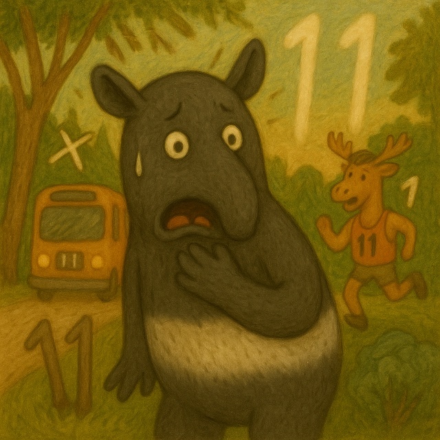 Однажды утром Тапир пил чай и вдруг заметил — стрелки на часах показывают 11:11.