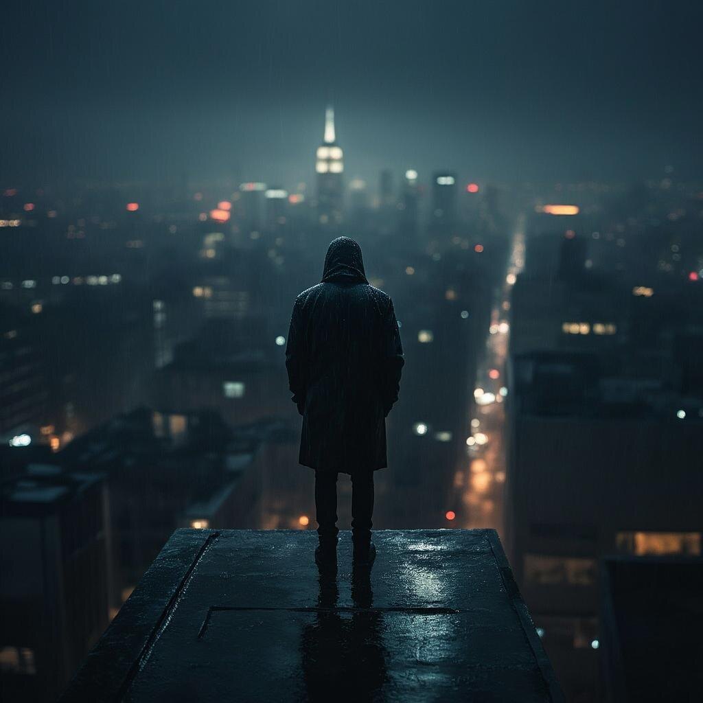 Ночь впивалась в город миллионами игл ноябрьского дождя. Я стоял на крыше, на самой макушке этого каменного великана, чувствуя, как ветер, пропитанный влажной стужей, пытается стащить меня вниз, в этот кишащий муравейник. Он не понимал, что я и так уже там. Я был в каждой его поре, в каждой лжи, что тихо зреет за запертыми дверями.