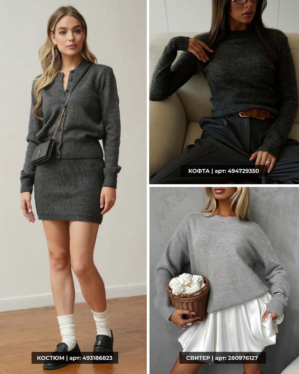 В этой подборке собраны шесть вещей с Вайлдберриз, которые создают полноценный зимний гардероб в спокойной серой и чёрно-молочной гамме. Разберём каждую модель по порядку, как на фото, с подробным описанием и советом стилиста.