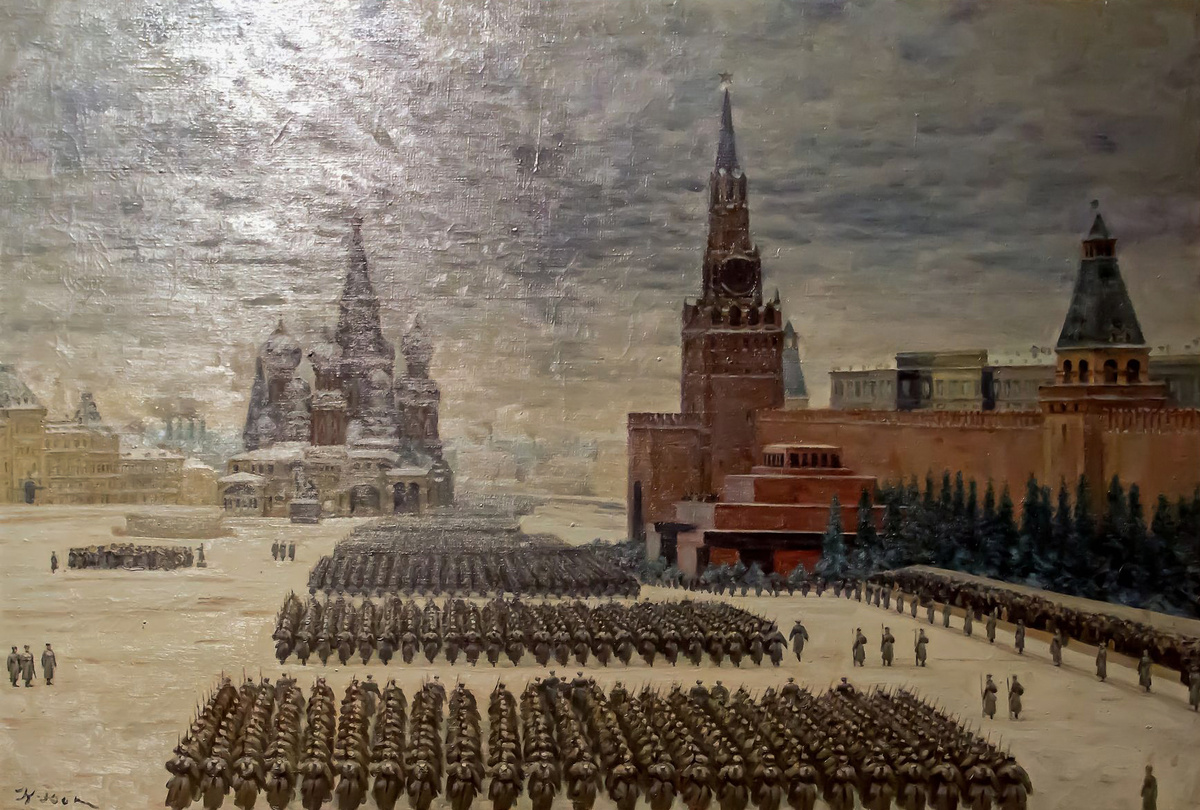 Чтобы в полной мере осознать величие запечатленного момента, необходимо перенестись мысленно в то тревожное время. Осень сорок первого года стала для страны одним из самых тяжелых испытаний. Вражеская армия стояла у самых подступов к столице, некоторые их части были уже в двадцати-тридцати километрах от Москвы. Город жил в осадном положении, ежедневно подвергаясь воздушным бомбардировкам. Были эвакуированы правительственные учреждения, дипломатический корпус и крупные промышленные предприятия. Нависла реальная угроза падения сердца государства.