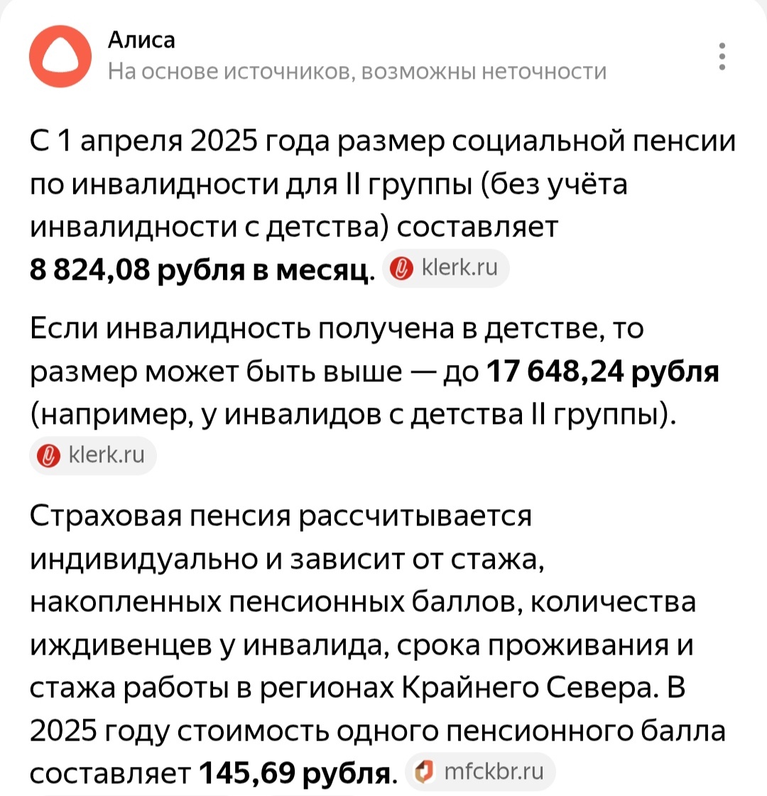 Вот из этих всех соображений и придумали, наверное, доплату за группу помимо того, что человек сам заработал🤷♀️. Потому что инвалиду реально необходимо чуть больше денег, чем просто пенсионеру без больших проблем со здоровьем.