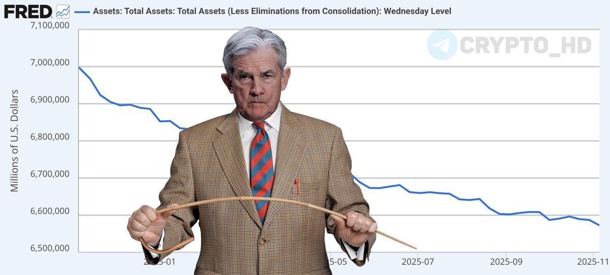 💸 Баланс ФРС сократился на $14,302,000,000 за одну неделю! ▪️ Миран, председатель ФРС: ❗️ Меня обнадеживает интеграция стейблкоинов в финансовую систему. ❗️ Широкое использование стейблкоинов может свидетельствовать о необходимости снижения ставки ФРС. - Широкое использование стейблкоинов может повысить стоимость доллара. - Криптовалютные инновации, влияющие на экономику, заслуживают внимания ФРС. - ДКП ФРС слишком ограничительная, риски спада растут при долгом удержании. - Нейтральная ставка ниже, политика пассивно ужесточилась несмотря на недавние снижения. - Слишком полагаться на прошлые данные опасно, решения лучше строить на прогнозах. Уоллер, председатель ФРС: ❗️Стейблкоины вводят конкуренцию в платежах. - Стейблкоины не представляют угрозы для монетарной политики. ▪️ Гулсби, председатель ФРС: - Порог для декабрьского снижения ставки выше, чем на двух прошлых заседаниях. - Больше беспокоит инфляция, чем риски по занятости. - Экономика в переходном режиме: низкий найм и низкие