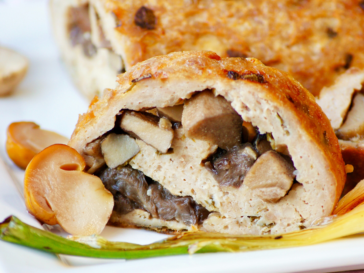 С лесными грибами рулет получается особенно праздничным и вкусным