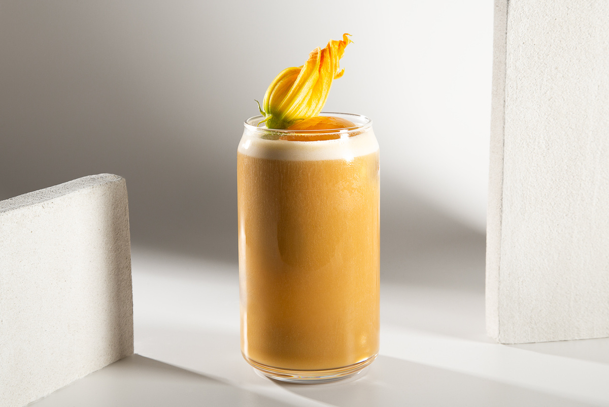Пюре AGROBAR Лукума - 50мл Сироп AGROBAR Грецкий Орех - 25мл Водка Ваниль - Бобы Тонка - 45мл Кокосовое молоко - 80мл Эспрессо - 1 порция Все ингредиенты соединить в блендере и взбить на средней скорости на протяжении минуты Выход: 280мл Посуда: банка Гарнир: соцветие цукини Лед: шар 2шт