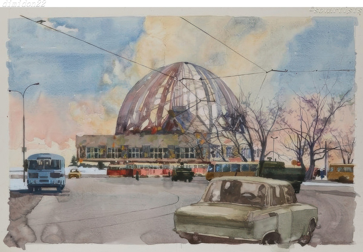 Ионин Давид Маркович (21.11.1916, Омск - 26.08.1987, Свердловск). «Цирк». 1978 год. Бумага, акварель; 500 х 750 мм.; (Свердловский областной краеведческий музей имени О. Е. Клера).
