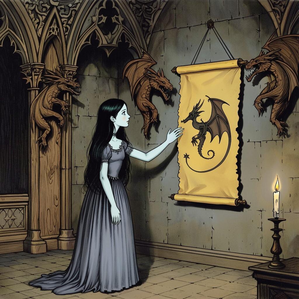 В чертогах одного королевства, где тени были длинны, а советы — лживы, росла принцесса, чья душа была отмечена древней печатью. С младых ногтей влекло ее не к прялке или сладким речам придворных, а к существам, чьи имена произносили шепотом, — к драконам. В ее покоях, пропахших ладаном и пылью, на стенах висели не портреты предков, а схемы их огненных троп в небе, а на полках стояли резные изваяния, запечатлевшие их ярость и скорбь.