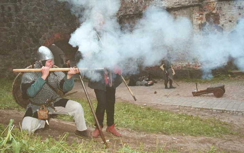 Порох пришёл на Русь, как и в Европу, предположительно в XIV веке. Первое достоверное упоминание о применении артиллерии относится к 1382 году при обороне Москвы от войск хана Тохтамыша. Эти ранние пушки, или «тюфяки», использовали привозной или кустарно изготовленный дымный порох.