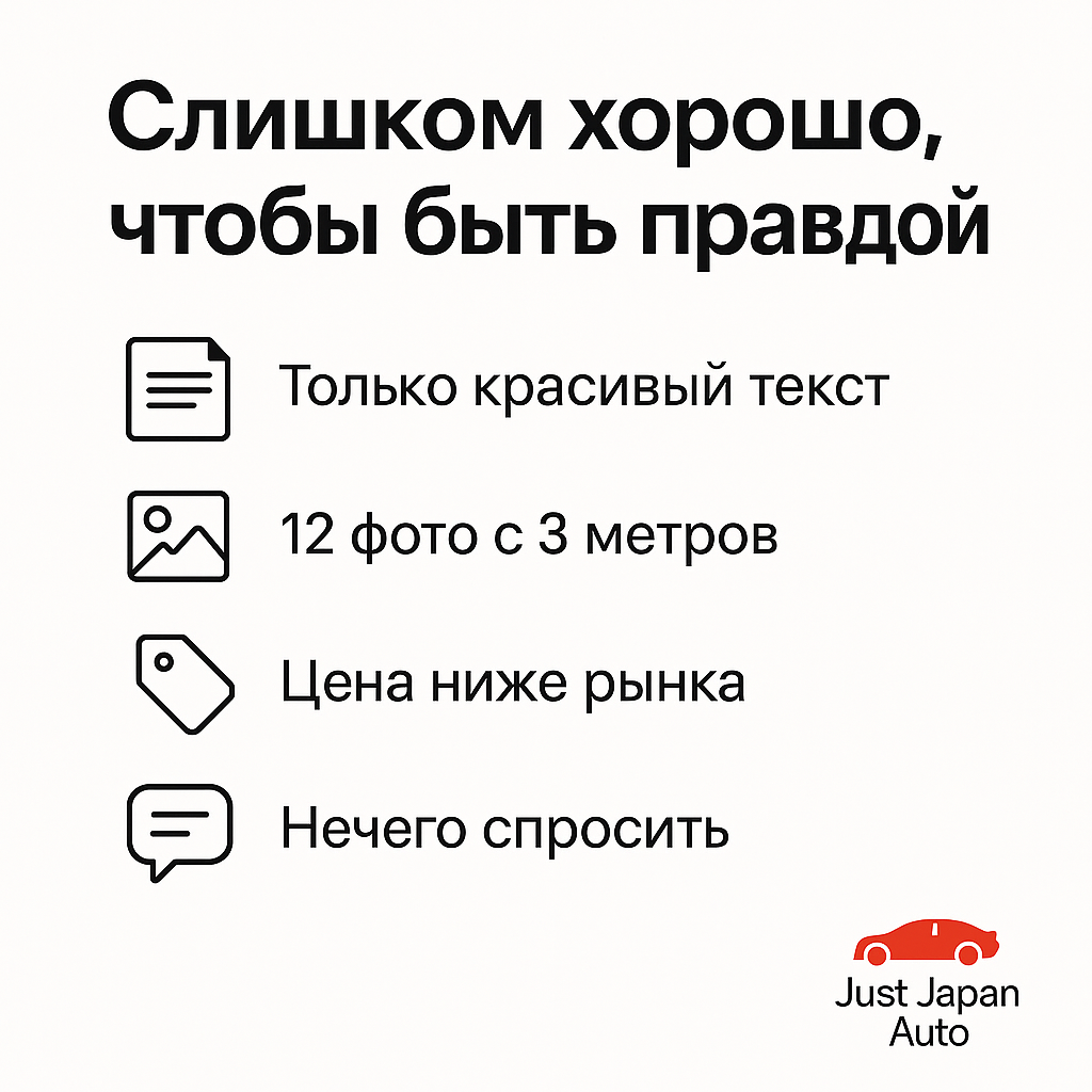 Вы тоже это видели. Объявление, которое выглядит как сказка: маленький пробег, состояние «идеал, сел и поехал», и цена... цена такая «сладкая», что хочется немедленно звонить. Но, как правило, в мире подержанных авто бесплатный сыр бывает только в мышеловке. Такие «подарочные» лоты — это приманки, рассчитанные на эмоции и спешку. К счастью, чтобы распознать обман, часто даже не нужно ехать на осмотр. Достаточно 60 секунд внимательно прочитать текст и посмотреть фото. Вот красные флаги, после которых я закрываю вкладку и вам советую. «Сказочник» всегда торопится и не любит детали, которые можно проверить. Фотографии часто врут красноречивее слов. Это самый главный маркер. Если машина стоит на 15-25% ниже средней рыночной цены, и на это нет внятного объяснения (редкая непопулярная комплектация, срочный переезд, дефект, честно указанный в тексте) — это ловушка. Никто не продаёт идеальную машину за бесценок. За низкой ценой всегда стоит либо проблемный кузов, либо юридические сложности, ли