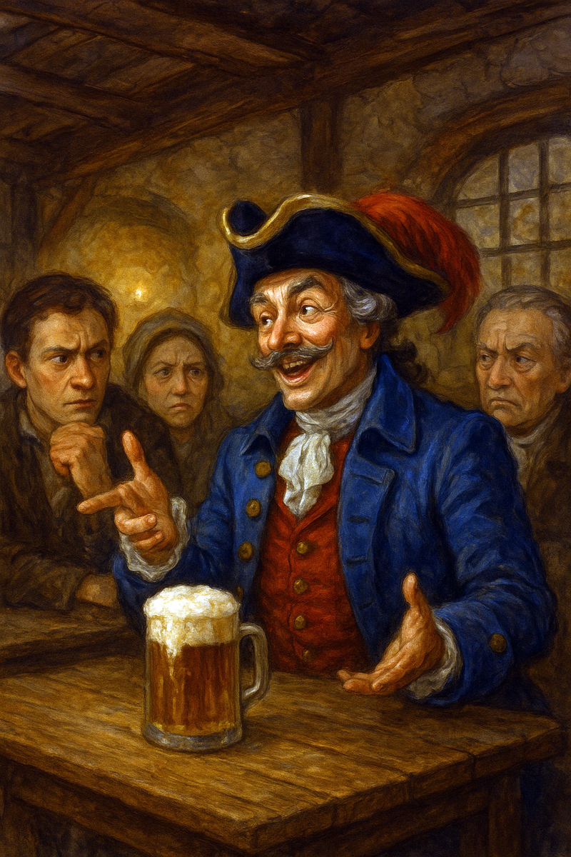Барон Мюнхгаузен не был лжецом. Нет. Он был художником, а свою жизнь сделал холстом. Он научил нас не бояться абсурда, смотреть на мир с улыбкой и всегда находить нестандартный выход из ситуации. Даже если этот выход лежит через полёт на пушечном ядре или вытаскивание себя за волосы из болота.