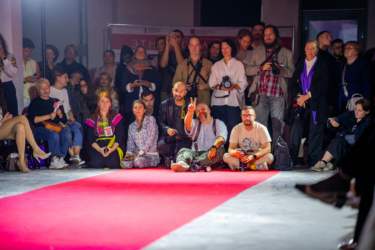 Общий план: показывает общую картину показа, модели и их наряды в контексте всего пространства.