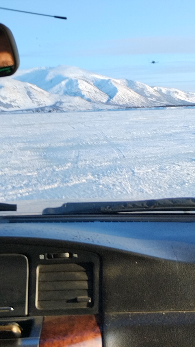 Все, наверное, знают, что такое зимник - зимняя переправа через реку по льду. И я всегда считала что как встанет лёд, так и можно спокойно всю зиму ездить.. Возможно, у нас в Сибири оно так и есть. Но не там, где совсем рядом Охотское море... Чуть становится теплее и лед поднимается при приливе. А потом, когда переправа снова открыта едешь и смотришь на это нагромождение льда. И трещины. Очень красиво. И жутковато. А рыбаки , вместе с машинами, целыми днями там.