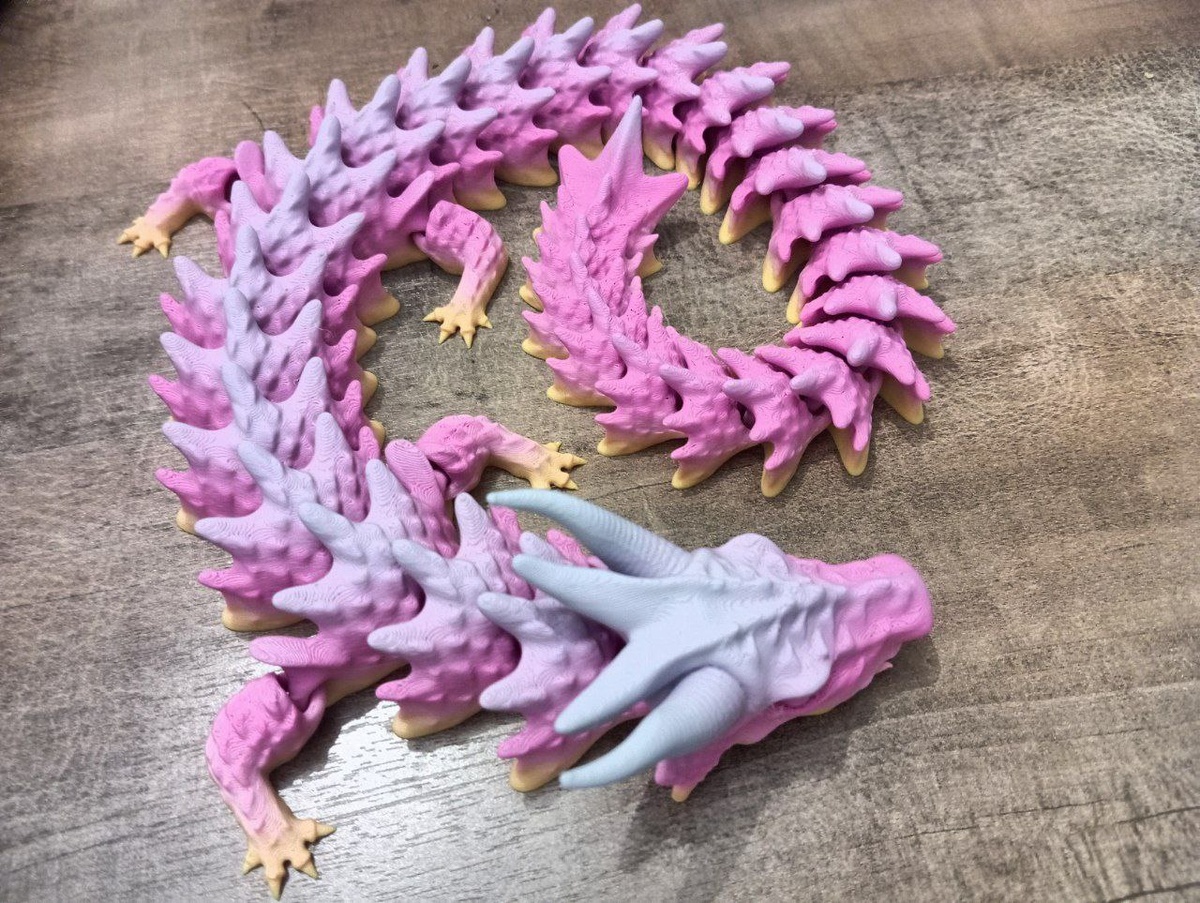 Поселившийся в редакции зверь напечатан на 3d-принтере. Полностью. Одним нажатием кнопки. Каждая косточка — отдельный элемент, то есть он из отдельных деталей, но напечатан разом, сразу собранным. Моего ума не хватает, чтобы понять, как так может быть. Навещал товарища-юбиляра, хоть посмотрел, как это всё работает. И про области применения этих принтеров наслушался историй. Несколько шокирован. Ах, да. Дракон цветной изначально — то есть таким и напечатан. Никто его не раскрашивал. Одно нажатие кнопки. В прямом смысле.