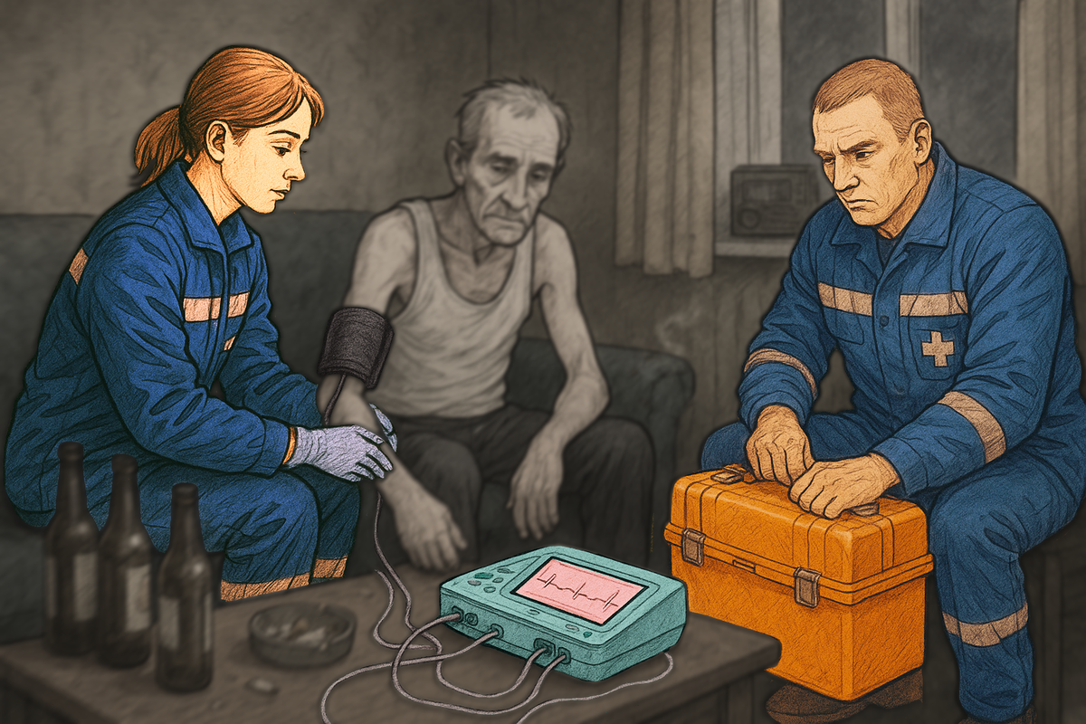 Со стороны диспетчерского окна послышался протяжный стон. – Опять он, – Игорь увидел адрес и вздохнул. – Пятый раз уже за неделю. – Может, ему и правда плохо, а? – усомнилась фельдшер Катя. Она трудилась на подстанции без года неделю и еще не до конца понимала тонкости этой работы. – Плохо говоришь? Ну ладно. Поехали. Сейчас сама все увидишь. Поездка не заняла много времени – дом был в 100 метрах от базы. Семеныч встретил их в дверях, в трениках и домашней майке, с папиросой во рту: – А, это снова вы. Ну, заходите. – Что случилось? – вежливым тоном спросила новенькая. – Да что-то опять сердечко прихватило. В квартире пахло перегаром. На столе стояли бутылки, окурки торчали прямо в обивке старого продавленного кресла цвета морской волны. – Ложитесь, давление измерим, - Игорь достал тонометр. – Да я постою. Мне лежать вредно, кровь к лицу приливает. В итоге измерили сидя. – 140 на 90. Нормальное, - Катя убрала манжету. – Как нормальное?! У меня инфаркт был! Мне нельзя так! Сняли ка