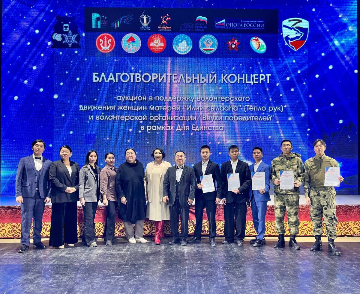🐻❄️ Волонтёры и партия «Единая Россия»: одна цель — за общую Победу В Якутске Доме дружбы народов имени Алексея Кулаковского прошел благотворительный концерт-аукцион, организованный партией «Единая Россия», Штабом общественной поддержки партии, региональным Комитетом семей воинов Отечества, добровольческим движением женщин-матерей Якутии «Илии сылааьа» (Тепло рук), волонтерской организацией «Внуки Победителей», при поддержке ряда учреждений и организаций, включая регионального координатора партийного проекта «Крепкая семья», региональное отделение «Молодая Гвардия Единой России», Якутское местное отделение партии, Управление общественных связей молодежной политики Окружной администрации города Якутска, Северо-Восточный фонд помощи поддержки Донбасса, общественную организацию «Лига женщин города Якутска», ЯРО «Опора России», Театр юного зрителя, «Волонтеры Туймаады», Республиканскую специальную (коррекционную) школу-интернат для детей-сирот, среднюю общеобразовательную школу № 40 име