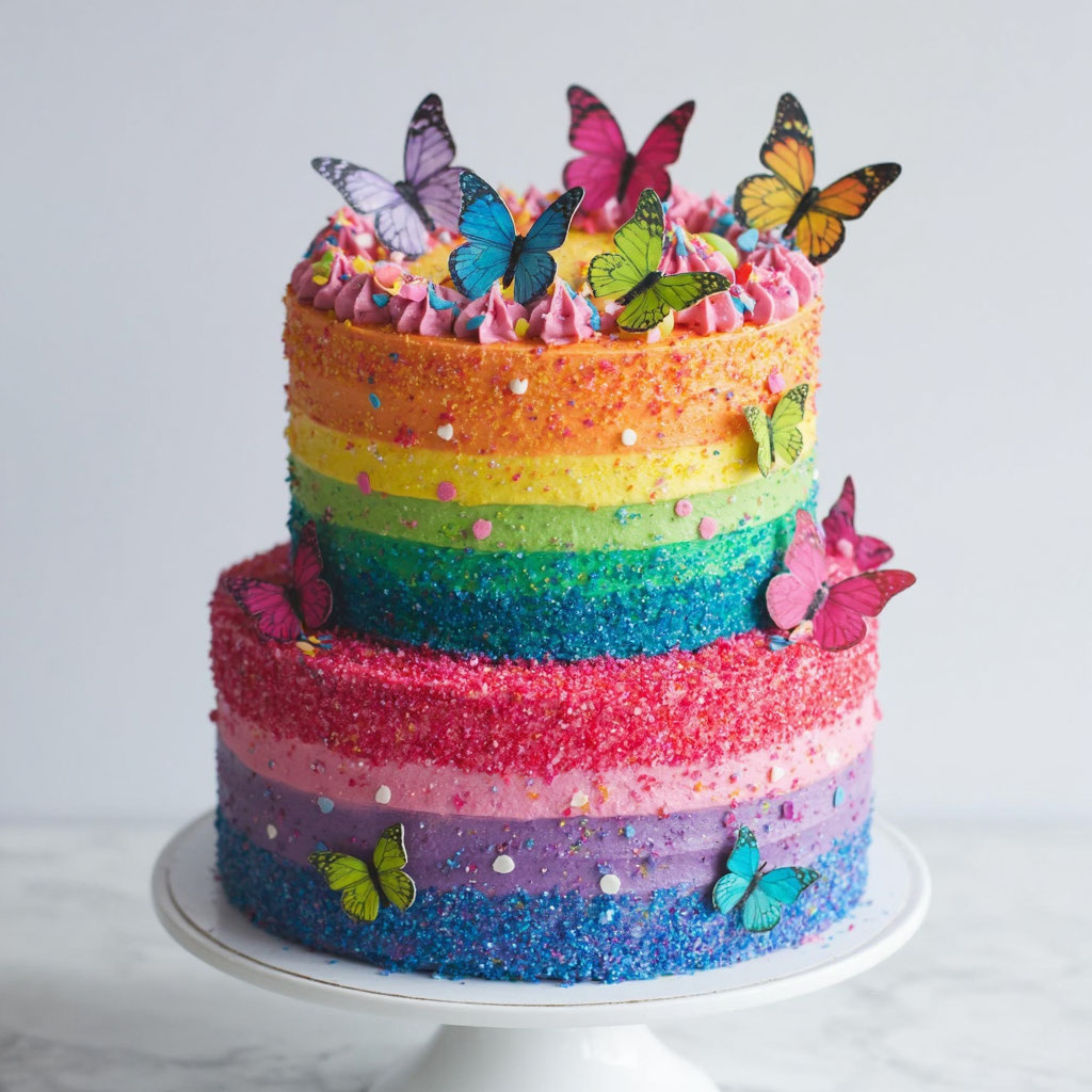 Ровно в 19:00 доставили торт. Алина бросилась встречать курьера, сердце билось от волнения. Но вместо ожидаемой элегантной композиции она увидела… буйство красок. Торт был покрыт ярко‑розовой мастикой, украшен объёмными сахарными бабочками, разноцветными конфетами и блестящими стразами. От её задумки не осталось ничего — лишь вес совпадал с заказом.