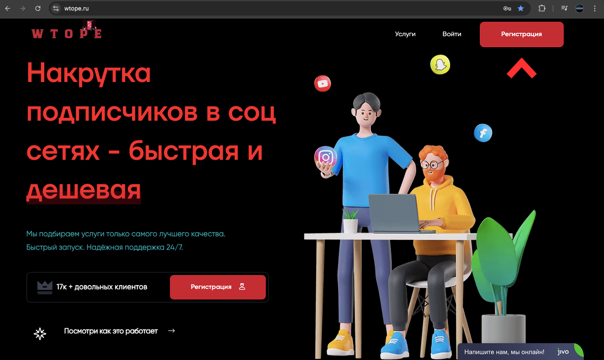 Накрутка подписчиков — это попытка искусственно повысить число подписчиков, лайков или комментариев у аккаунта в Instagram с помощью сторонних сервисов, ботов, фейковых аккаунтов или платных «пакетов» подписчиков. На бумаге рост числа подписчиков выглядит хорошо: профиль кажется популярным, выше доверие у случайных посетителей. На практике у накрутки много подводных камней. А в этой статье мы рассмотрим самый быстрый и качественный способ без каких либо заданий ССЫЛКА НА РЕГИСТРАЦИЮ - https://wtope.ru При переходе на сайт, проходим регистрацию Далее нам нужно пройти регистрацию Так же вы можете протестировать сервис бесплатно, тестовыми услугами. Или же в сервисе есть встроенный таймер, вам достаточно находиться на сайте и каждые 10 минут получаете рандомную сумму на ваш баланс. Но все же, если вам нужно быстро, то пополняем баланс любым удобным для вас способом, займет одну минуту. Зачисление автоматическое, сразу после пополнения. На странице заказа выбираете нужную категорию, дале