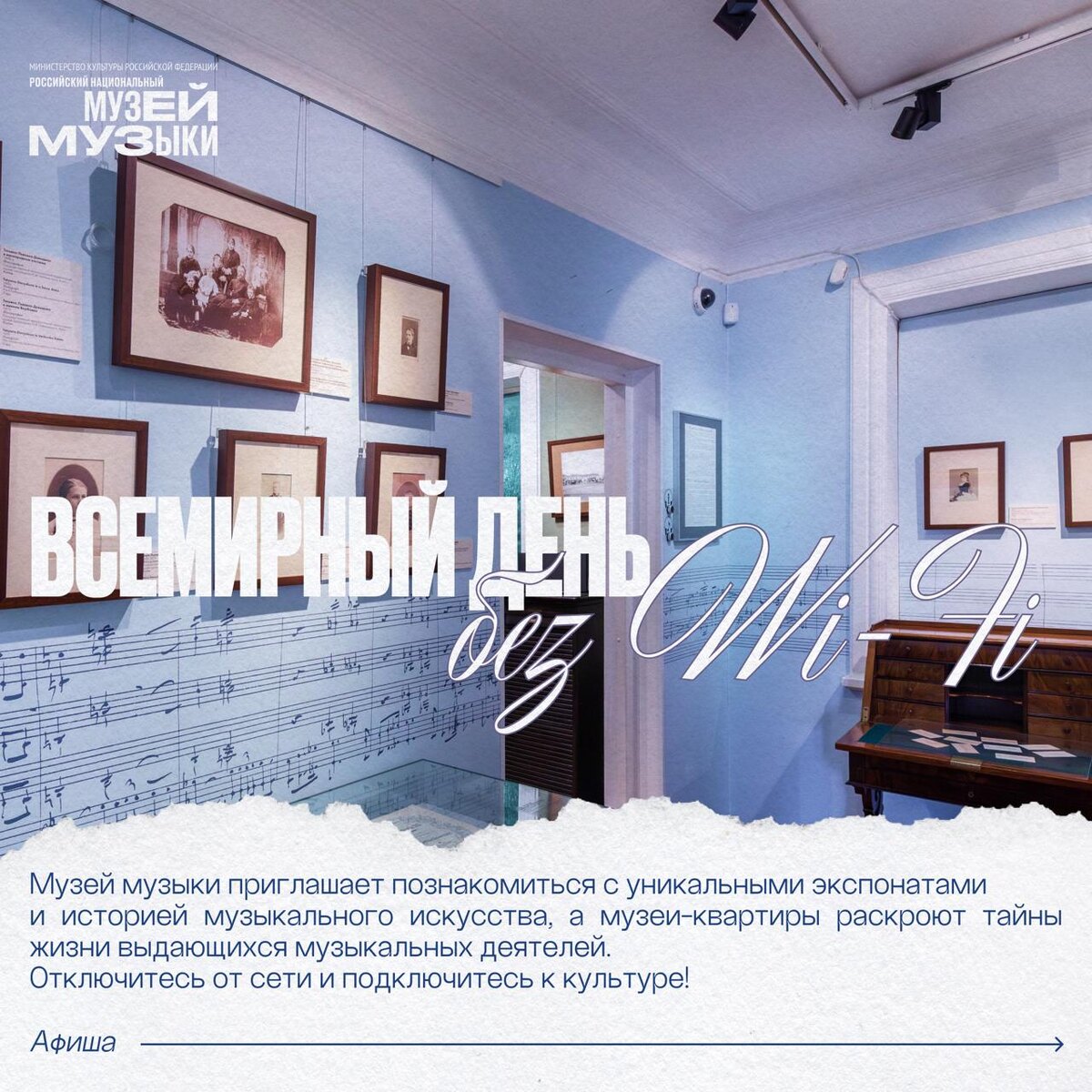 Мои милые друзья, отключите Wi-Fi и подключитесь к истории! 🤓 Во Всемирный день без Wi-Fi я приглашаю вас погрузиться в мир звуков и воспоминаний. Посетите Музей музыки, где каждая нота рассказывает свою историю или загляните в музеи-квартиры, чтобы почувствовать дух прошлого. Оставьте гаджеты дома и вдохновитесь настоящим – ждем вас! 🥹 Афиша здесь! 👈