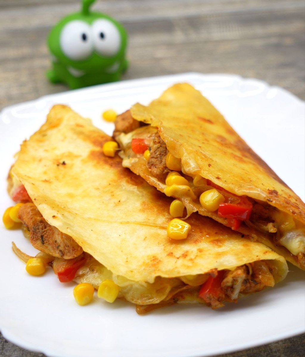 Если вы любите блюда, которые готовятся быстро, но выглядят и пахнут как из кафе — эта кесадилья точно ваш вариант. Хрустящая тортилья, ароматная курица, овощи и много тянущегося сыра — сочетание, которое всегда работает. Готовится за считанные минуты, а результат впечатляет — сочно, с дымком и с лёгкой мексиканской ноткой. Для начинки: Дополнительно: Куриное филе нарезаю небольшими кусочками — примерно 2–3 см.