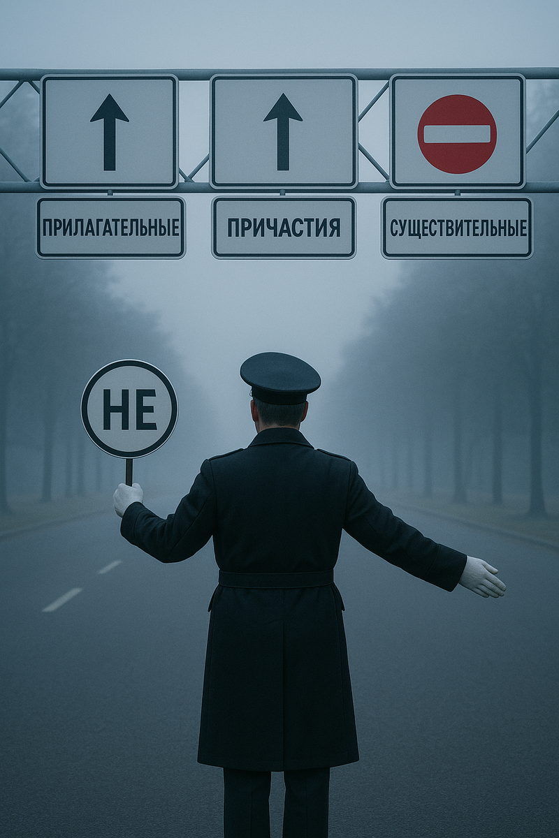 Правописание слов с «не» — одна из тех тем русского языка, которая встречается и в ЕГЭ, и практически в любом школьном диктанте. Ошибка здесь может стоить нескольких баллов, а иногда и всей оценки за работу. При этом ученики часто используют только принцип «как слышится», забывая о том, что написание «не» регулируется строгими правилами, зависящими от части речи. В этой статье мы разберём все основные случаи, наведём короткие алгоритмы. Слитно: ненастье , ненависть недорогой подарок Раздельно: не правда, а ложь- противопоставление Один в поле не воин - подразумевается противопоставление и пояснение Это не карандаш - конкретное Слитно небольшое, но красивое озеро 📍Важно: первый признак- размер, второй- эстетический аспект. Раздельно не большой, а маленький вовсе не, отнюдь не, далеко не, никто+ ничто (и их падежные формы) вовсе не интересный фильм не юго-западный не зеленый не двухэтажный дом не молочный десерт, не мамина юбка 📍Важно: краткие прилагательные с «не» пишутся