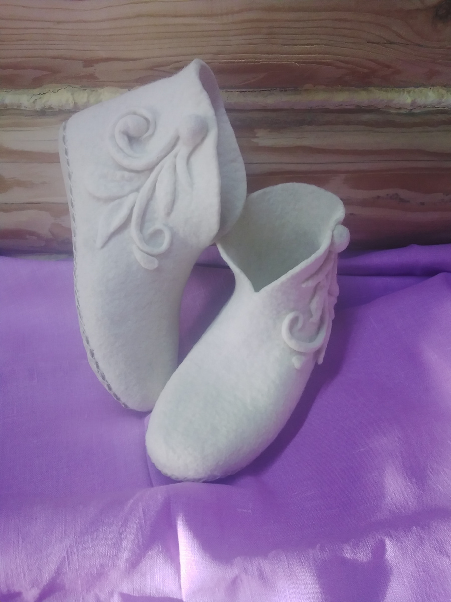 Представляем вам очаровательные войлочные чуни, которые превратят каждый ваш домашний день в праздник уюта! 👢 ✨ Почему эти чуни покорят ваше сердце? Натуральность: изготовлены из 100% овечьей шерсти — дышащий материал, который дарит сухое тепло. Дизайн с душой: изящный рельефный узор придаёт обуви особый шарм и делает её уникальной. Комфорт: мягкая структура войлока нежно обволакивает стопу, создавая ощущение невесомости. Польза для здоровья: войлочная обувь оказывает лёгкое массажное действие, улучшает кровообращение. Практичность: не требуют особого ухода, долго сохраняют внешний вид. 🌬 Идеально подойдут для: тёплых домашних вечеров; прохладных полов в квартире; создания расслабленного, но стильного образа дома; заботы о здоровье ваших ног. 🌸 Цвет и стиль: нежный светлый оттенок легко впишется в любой интерьер и дополнит ваш домашний гардероб. 💡 Совет: носите чуни босиком — так вы в полной мере ощутите их целебный эффект и комфорт! Подарите себе или близким частичку домашнего уют