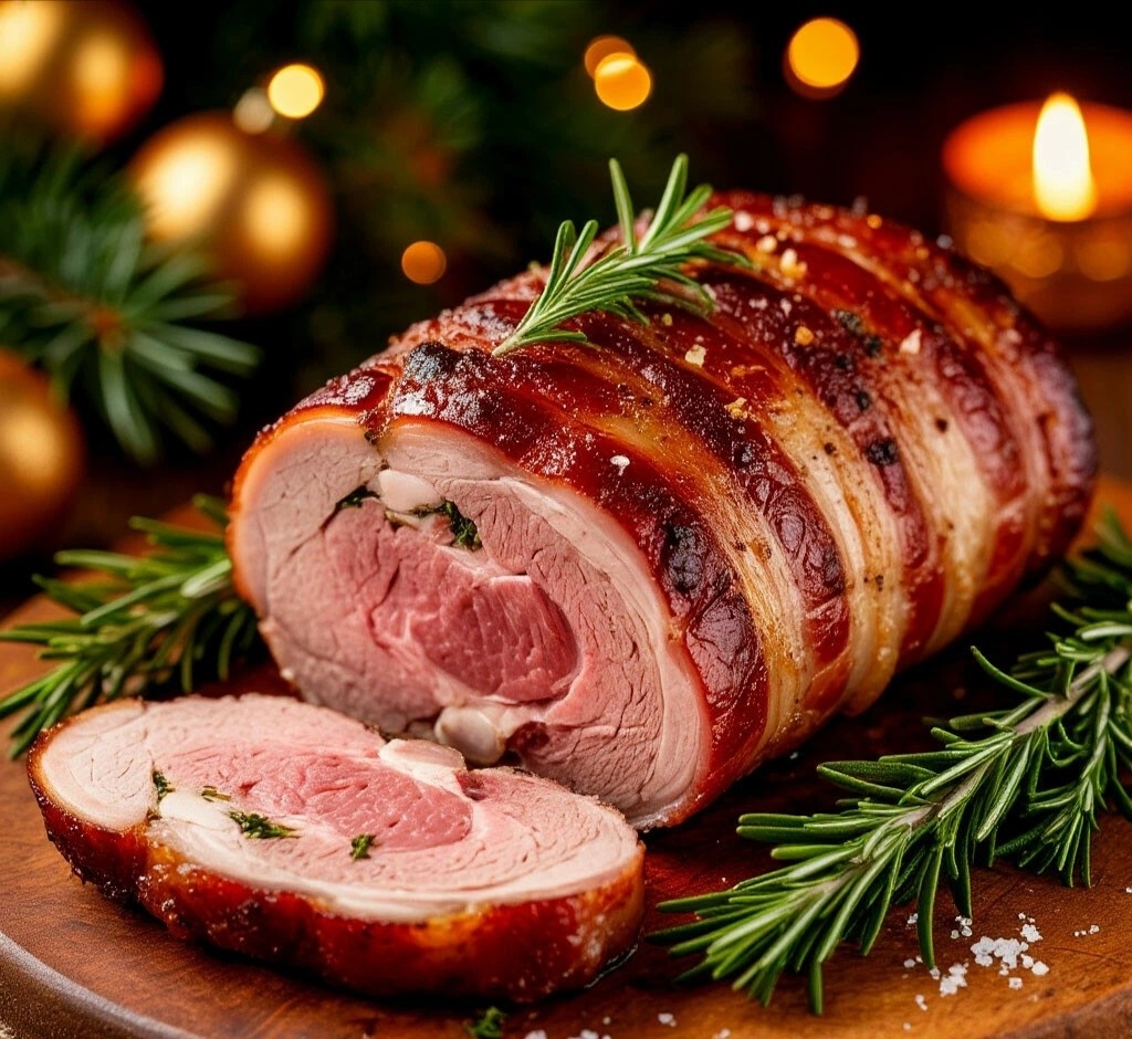 ЗАПЕЧЕННАЯ СВИНАЯ ШЕЙКА С ЧЕСНОКОМ В БЕКОНЕ Мяу, мои пушистые мясоеды! 😺 Пришло время главного блюда — сочной свиной шейки, запеченной в хрустящем беконе с ароматным чесноком! Это мясо станет королем вашего новогоднего стола! 👑🍖 ЗАПЕЧЕННАЯ СВИНАЯ ШЕЙКА С ЧЕСНОКОМ В БЕКОНЕ ИНГРЕДИЕНТЫ: 🧾 ·Свиная шейка — 1,5 кг ·Бекон слайсами — 200-300 г ·Чеснок — 1 головка ·Соль крупного помола — 1 ст.л. ·Копченая паприка — 1 ст.л. ·Горчица дижонская — 3 ст.л. ·Соевый соус — 2 ст.л. ·Мед — 1 ст.л. ·Растительное масло — 1 ст.л. ВРЕМЯ ПРИГОТОВЛЕНИЯ: ⏰ 1,5 часа + маринование СЛОЖНОСТЬ:🐾 Высший пилотаж ПОШАГОВЫЙ РЕЦЕПТ: 👩🍳 1. Чеснок очистить. Смешать соль с паприкой. Обвалять каждый зубчик чеснока в смеси. 🧄 2. Нашпиговать мясо подготовленным чесноком, делая глубокие надрезы ножом. 🔪 3. Смешать горчицу, соевый соус и мед. Натереть мясо маринадом со всех сторон. Завернуть в пленку, мариновать в холодильнике ночь. 🕑 4. Мясо обернуть ломтиками бекона, перевязать бечевкой для сохранения формы. ?