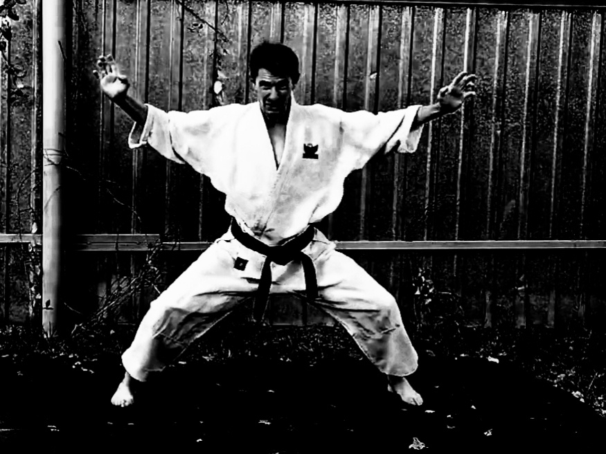 Выбегаем из автобуса. Ребята рассыпаются полукругом, а я на переднем плане исполняю Ката Сэне Хэдоди. Затем становимся в шахматном порядке в три пары, и синхронно под счёт делаем различные комбинации, атакуя друг другу по очереди, и показывая различные блоки с контратакой в ответ.