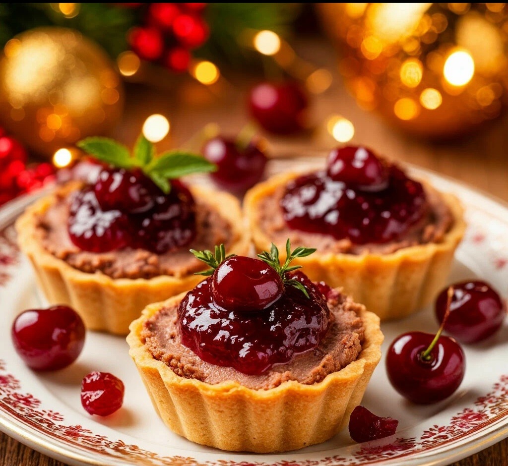 ЗАКУСКА — ТАРТАЛЕТКИ С ПАШТЕТОМ ИЗ ИНДЮШАЧЬЕЙ ПЕЧЕНИ С ВИШНЕВЫМ ДЖЕМОМ Мяу, мои пушистые гурманы! 😺 Начнем нашу новогоднюю подготовку с изысканной закуски — нежнейшего паштета из индюшачьей печени в хрустящих тарталетках с пикантным вишневым джемом! Это блюдо станет настоящей звездой праздничного стола! 🎄✨ ТАРТАЛЕТКИ С ПАШТЕТОМ ИЗ ИНДЮШАЧЬЕЙ ПЕЧЕНИ С ВИШНЕВЫМ ДЖЕМОМ ИНГРЕДИЕНТЫ ДЛЯ ПАШТЕТА: 🧾 ·Печень индюшиная — 500 г ·Лук репчатый — 1 шт. (150 г) ·Сливочное масло — 150 г ·Сливки 33% — 100 мл ·Коньяк — 50 мл ·Соус Шрирача — 1-2 ч.л. ·Соль — по вкусу ·Тимьян свежий — 2-3 веточки ИНГРЕДИЕНТЫ ДЛЯ ДЖЕМА: 🧾 ·Вишня — 300 г ·Сахар — 100 г ·Красное сухое вино — 50 мл ДЛЯ ПОДАЧИ: 🧾 ·Тарталетки — 12-15 шт. ВРЕМЯ ПРИГОТОВЛЕНИЯ: ⏰ 1 час + охлаждение СЛОЖНОСТЬ:🐾 Высший пилотаж ПОШАГОВЫЙ РЕЦЕПТ: 👩🍳 1. Печень промыть, обсушить, удалить пленки. 🦃 2. Лук нарезать полукольцами. В сковороде растопить 50 г сливочного масло. Обжарить лук до мягкости. Добавить печень, жарить по 3-4 минуты с