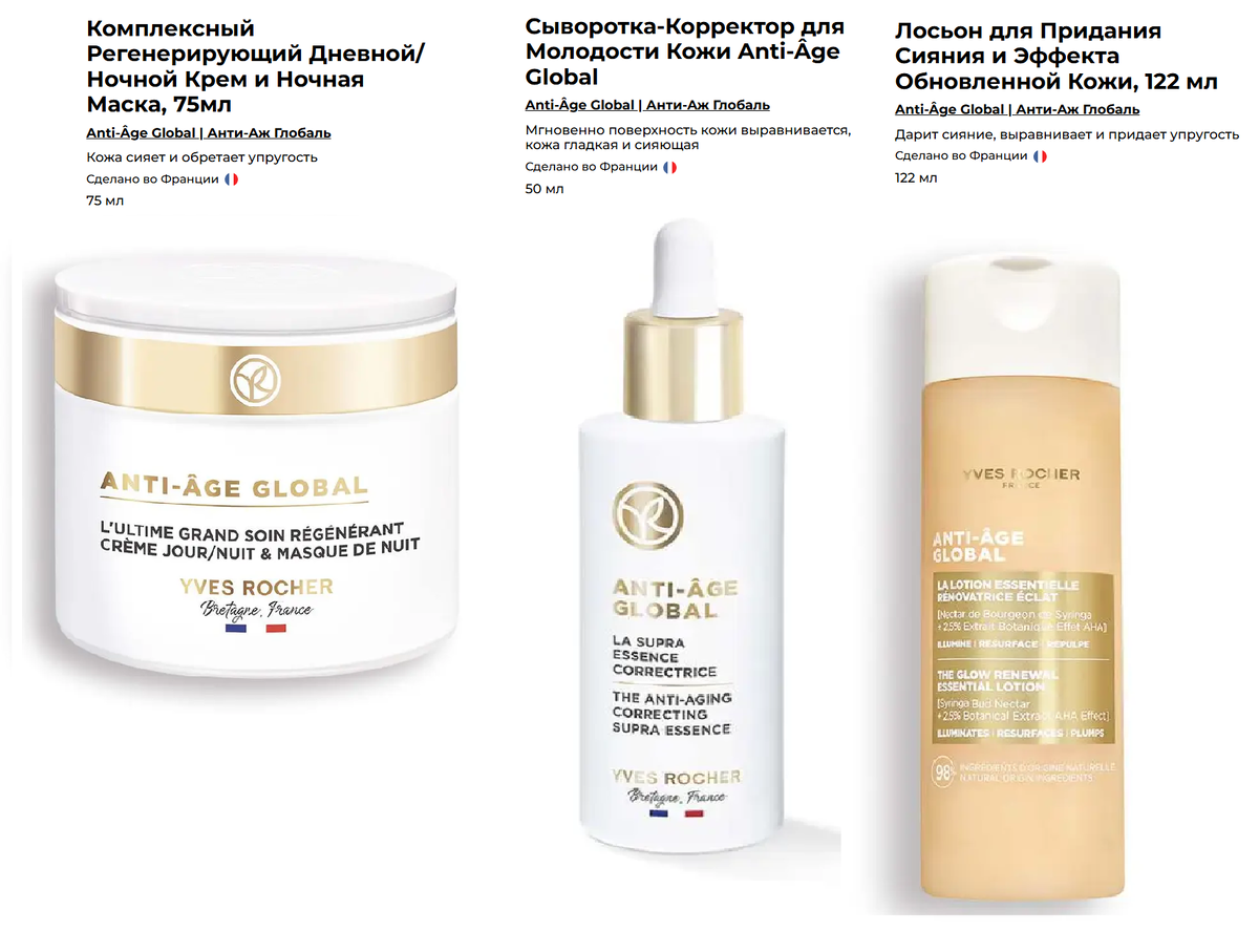 Всем привет! Сегодня я хочу поделиться своими любимками у бренда Ив Роше. Начну с категории для лица. Серию Anti-Âge Global люблю и обожаю уже много лет. Один из активных ингредиентов всей серии это -нектар бутонов серени , который получен с помощью запатентованной технологии экстракции. Он воздействует на клетки кожи, стимулируя выработку коллагена и процессы регенерации; обладает антивозрастными свойствами. Еще в составе вода цветков василька или горечавки, которая обладает противовоспалительными и смягчающими свойствами. Масло Ши- увлажняет, смягчает, заживляет, уменьшает отечность. Глицерин- увлажняет кожу. Эмоленты- притягивают воду из окружающей среды. Бетаин – увлажняет и смягчает. Сквалан- восстановление барьерных свойств кожи и защита её от негативного воздействия внешних факторов. Еще из этой серии мне очень нравится антивозрастной крем для контура глаз. У него очень удобный металлический аппликатор, который охлаждает и снимает отечность на коже вокруг глаз. Далее- макия