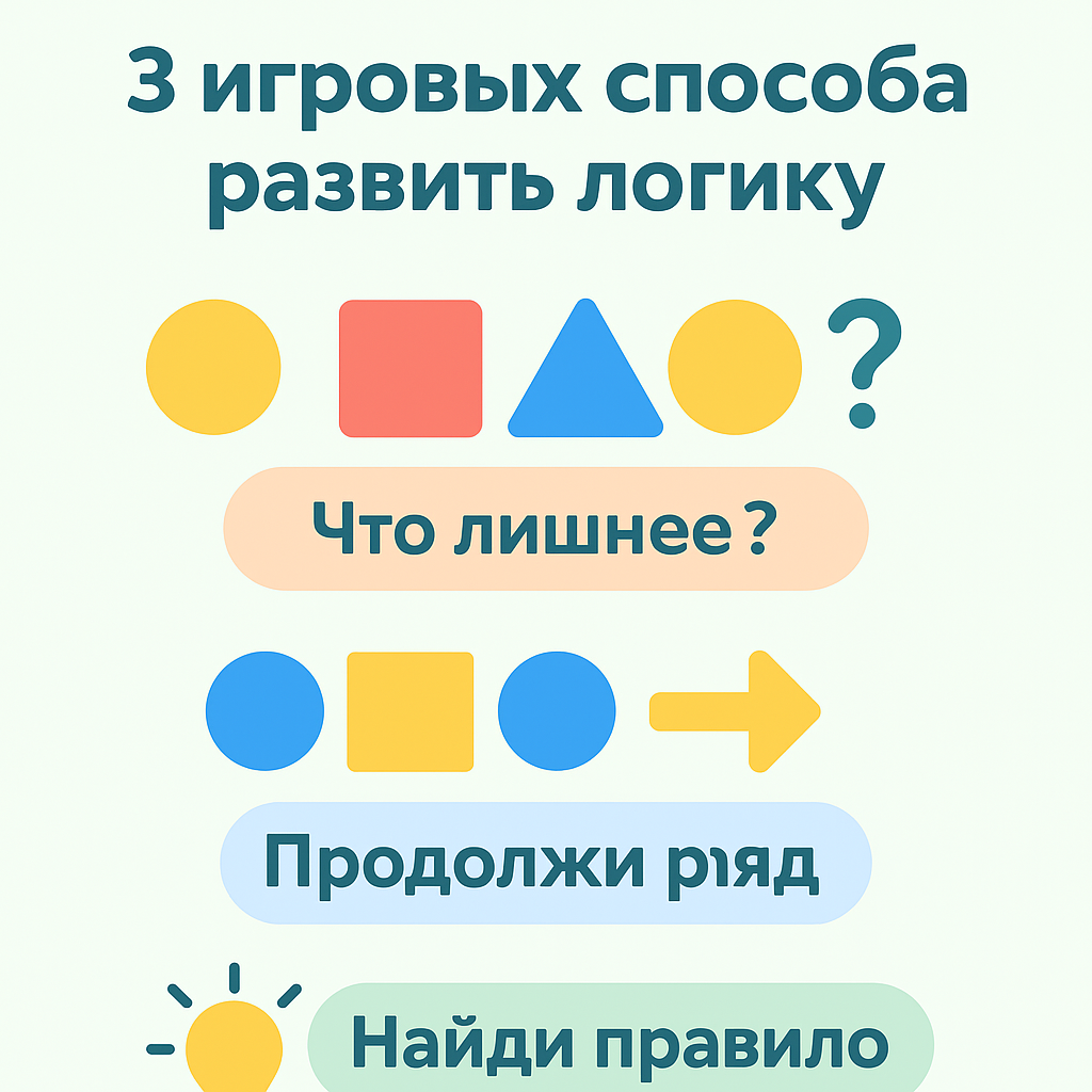 Логика — это не про формулы, а про умение думать последовательно. У дошкольников она развивается через игры, сравнения и маленькие открытия. Почему важно тренировать логику с раннего возраста: – помогает ребёнку рассуждать, а не заучивать; – улучшает память и внимание; – делает математику и чтение понятнее. 3 игровых способа развить логику: «Что лишнее?» Покажите ребёнку 4 предмета — три похожих, один лишний. Пусть объяснит, почему. «Продолжи ряд» Создайте последовательность: кубик — шар — кубик — шар. Ребёнок должен продолжить закономерность. «Найди правило» Попросите малыша угадать, по какому принципу вы раскладываете предметы — по цвету, размеру, форме. Почему онлайн это удобно: Педагог использует картинки, анимации, интерактивные задания — ребёнок не устает, а вовлекается в процесс. Вывод: Развивая логику через игру, мы формируем основу для будущих школьных успехов. Хотите, чтобы ребёнок научился рассуждать и искать решения? Попробуйте игровые онлайн-занятия. 📞 +7 903 243