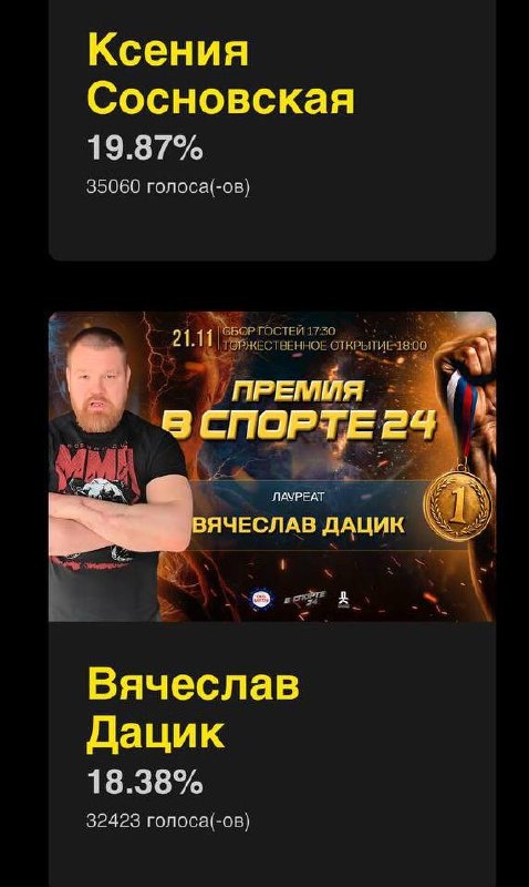 Дорогая гвардия! Наш друг и брат Вячеслав Дацик участвует в голосовании, и нам нужна поддержка . Всего два клика-открыть и нажать на кнопку голосовать под фото Вячеслава . Ждем поддержки от каждого, перепост приветствуем . https://vsporte24.ru/index.php?route=extension/module/voting