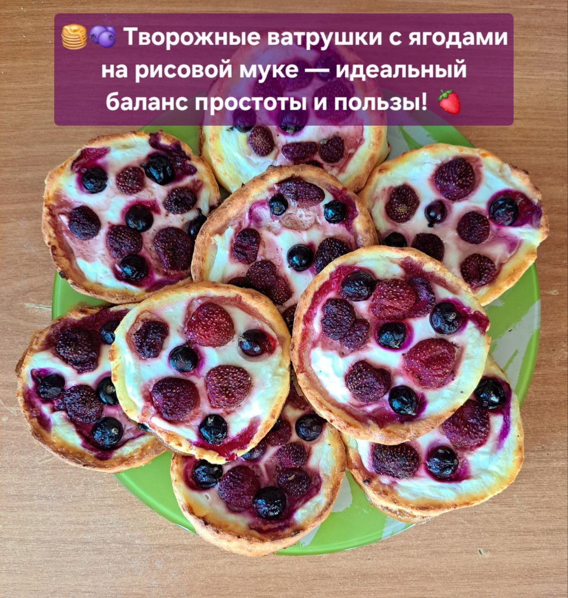 🥞🫐 Творожные ватрушки с ягодами на рисовой муке — идеальный баланс простоты и пользы
