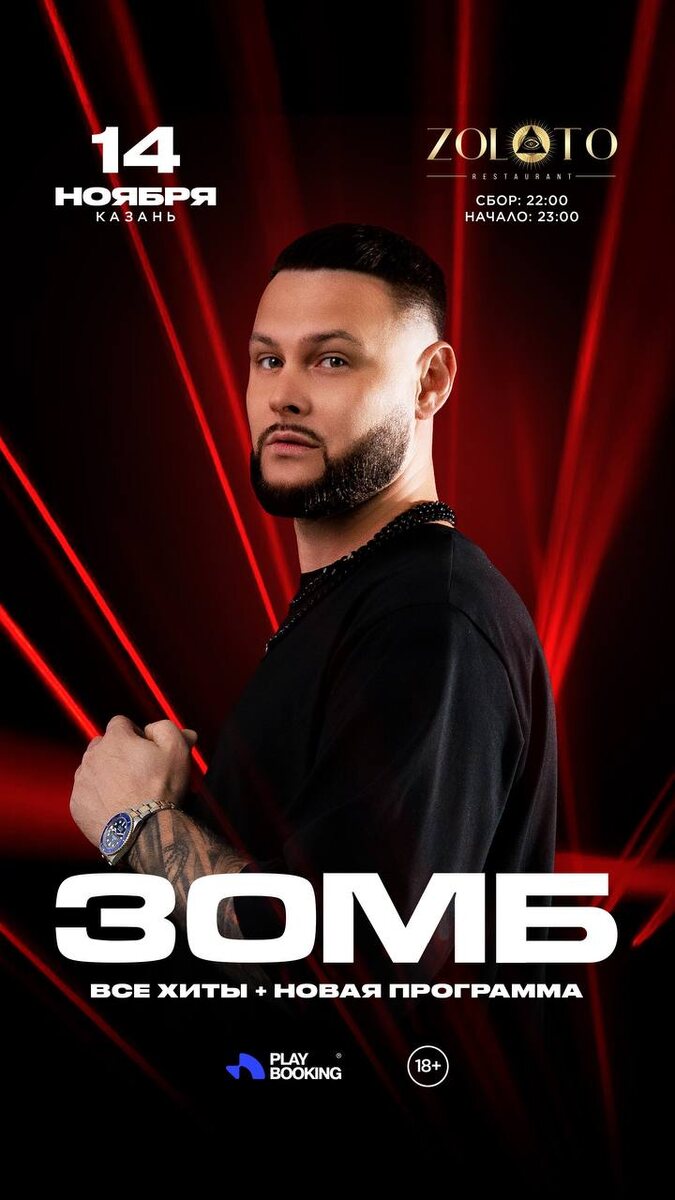 🎤 ZOMB в Казани! 🔥 Один из самых ярких артистов новой волны — Зомб — выступит 14 ноября 2025 в ресторане Zoloto! Хиты «Делаем флекс», «Даже не половина», «Занят» и другие прозвучат вживую — под мощный звук, свет и драйв большого шоу. 💥 Настоящая энергия, узнаваемый стиль и полное погружение в музыку — всё это ждёт тебя на концерте! 📅 Дата: 14 ноября 2025 ⏰ Сбор гостей: с 23:00 📍 Место: Клубный ресторан Zoloto, ул. Пушкина, 29а, Казань Подробнее: https://kazanecc.ru/gde-poest/restoran-zoloto/?utm_source=kazanecc.ru. ⚡️ Не пропусти ночь, которая запомнится надолго! 🎟 Билеты и бронирование — в сообщениях клуба. #Zomb #концертКазань #кудапойтиКазань #Казань2025