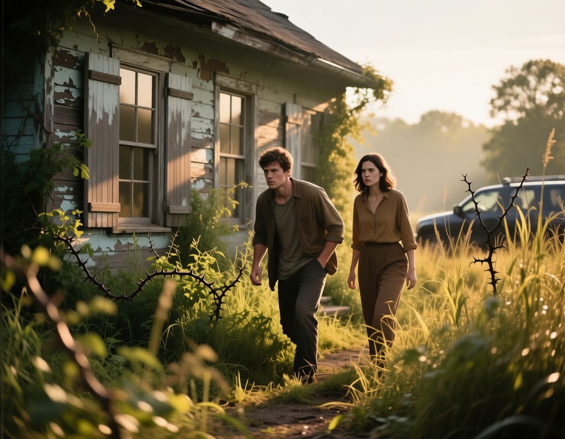 Выйдя из машины, мы инстинктивно пригнулись и бесшумно пошли по траве к калитке. Она отворилась с оглушительным скрипом, разорвавшим давящую тишину. Мы замерли, прижавшись к шершавым доскам забора, но из дома не последовало никакой реакции. Двор был пуст, только буйно разросшийся бурьян да груда поленьев под навесом.