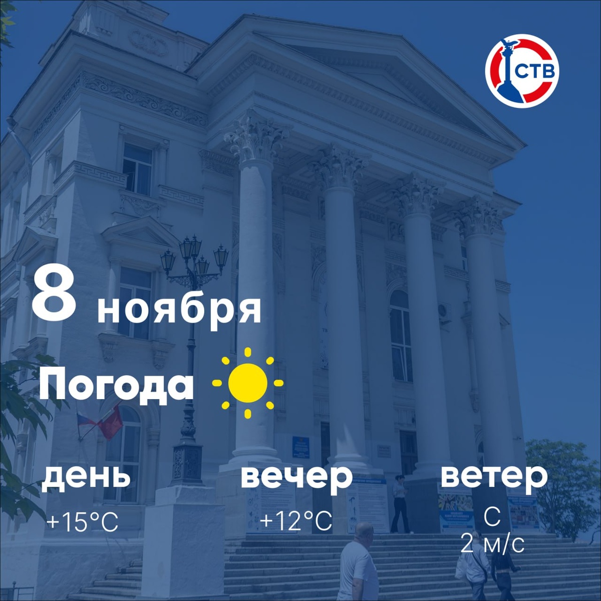 ☀️ Доброе утро, севастопольцы! Сегодня, 8 ноября, в городе солнечно. Всех с окончанием рабочей недели! Хорошего отдыха и позитивного настроения. 📺 Подписывайтесь на СТВ в MAX