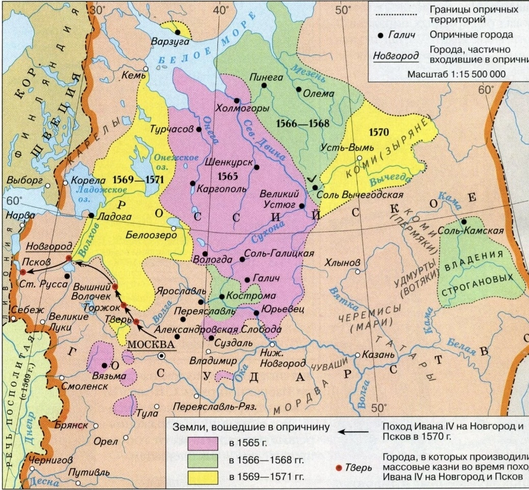 Апогеем опричнины стал опричный поход на Новгород 1570 года, в ходе которого были разорены города Тверь, Торжок, Новгород, Псков и многие другие.
